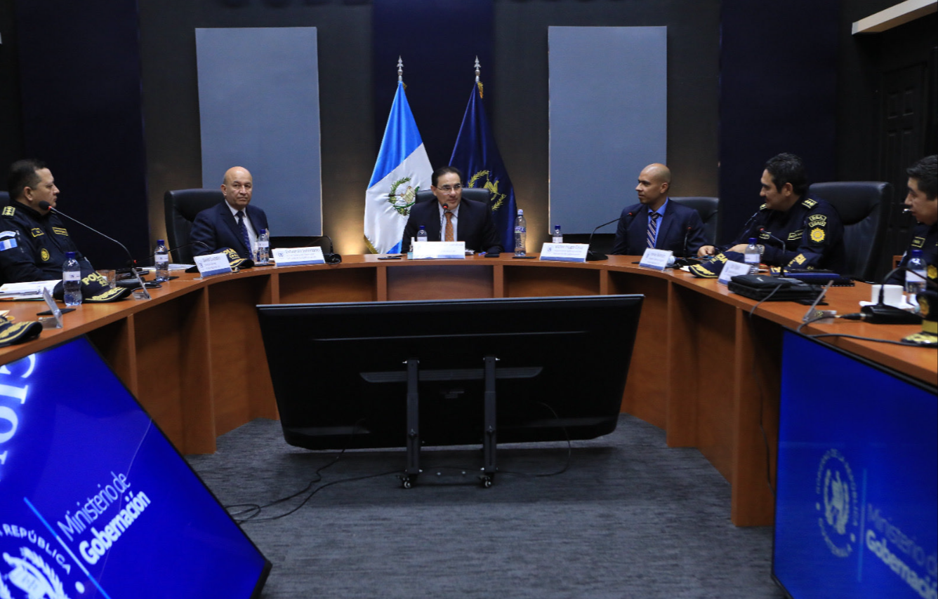 El Ministro de Gobernación, Marco Antonio Villeda, junto con los Viceministros de Seguridad y Antinarcóticos, Estuardo Roberto Solórzano y Victor Hugo Cruz, respectivamente, lideró una reunión de trabajo con las autoridades de la @PNCdeGuatemala. pic.twitter.com/nPEJV7sEM7