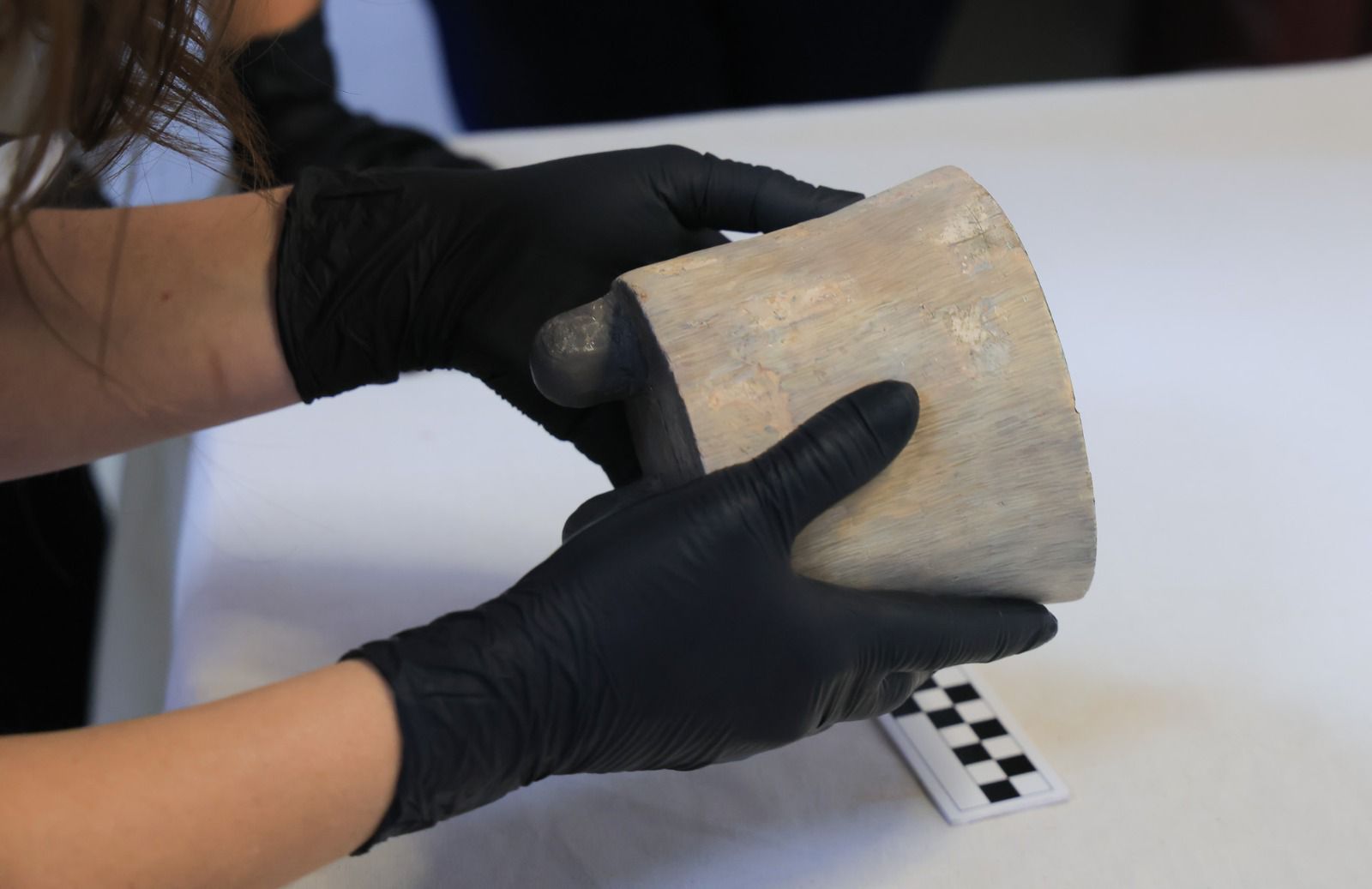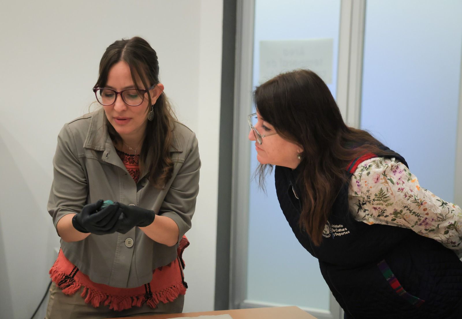 Durante el recorrido, la funcionaria pudo observar los procedimientos técnicos que impulsa el Viceministerio de Patrimonio Cultural y Natural, enfocados en analizar el estado físico y estructural de diversas piezas arqueológicas que forman parte del patrimonio nacional.