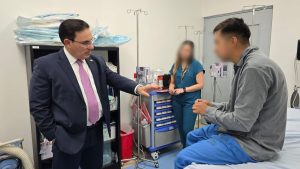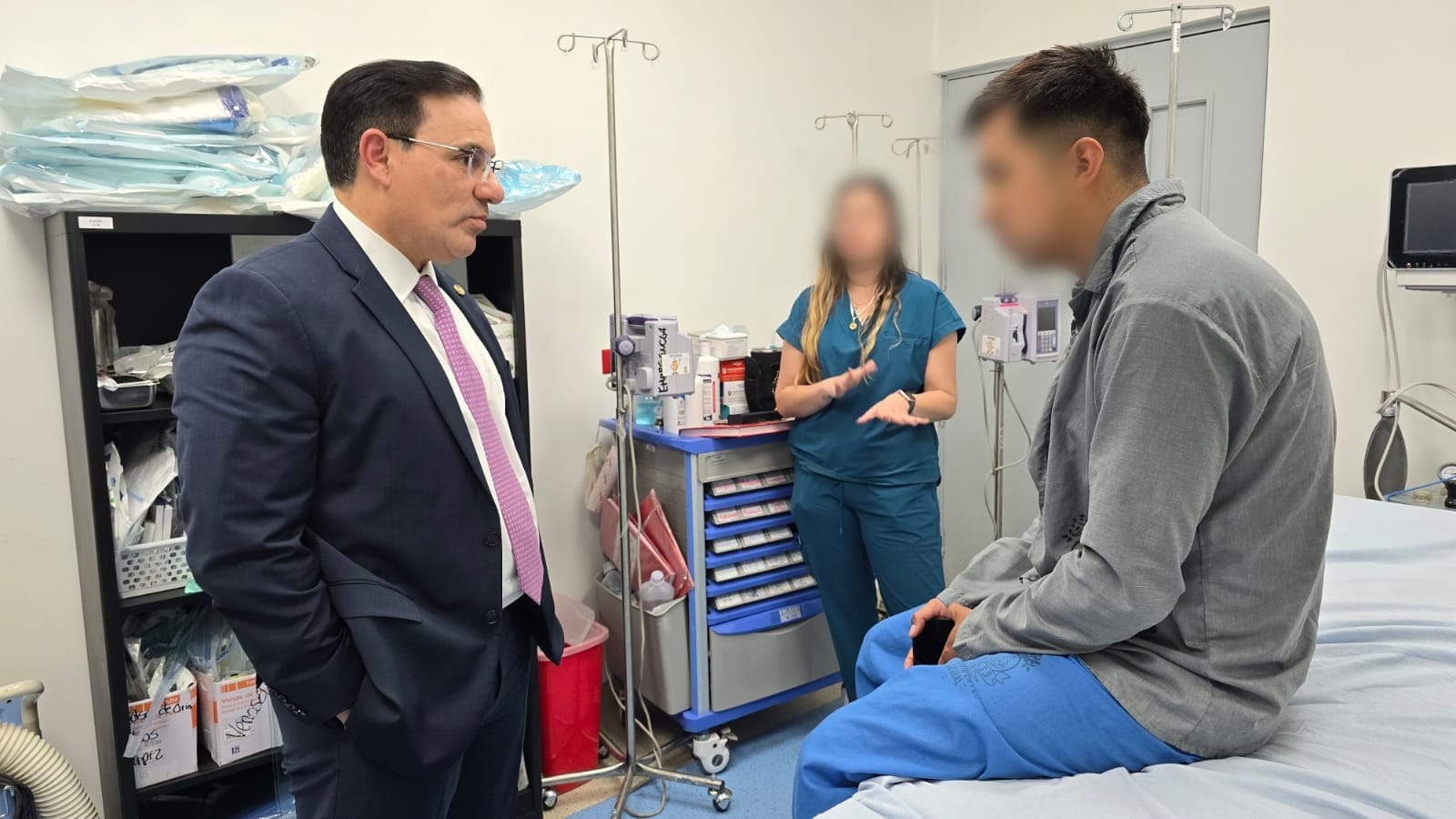 Durante su visita al centro asistencial donde el agente permanece en recuperación, el titular de la cartera del Interior expresó su reconocimiento al trabajo policial y reiteró el compromiso institucional con su bienestar: