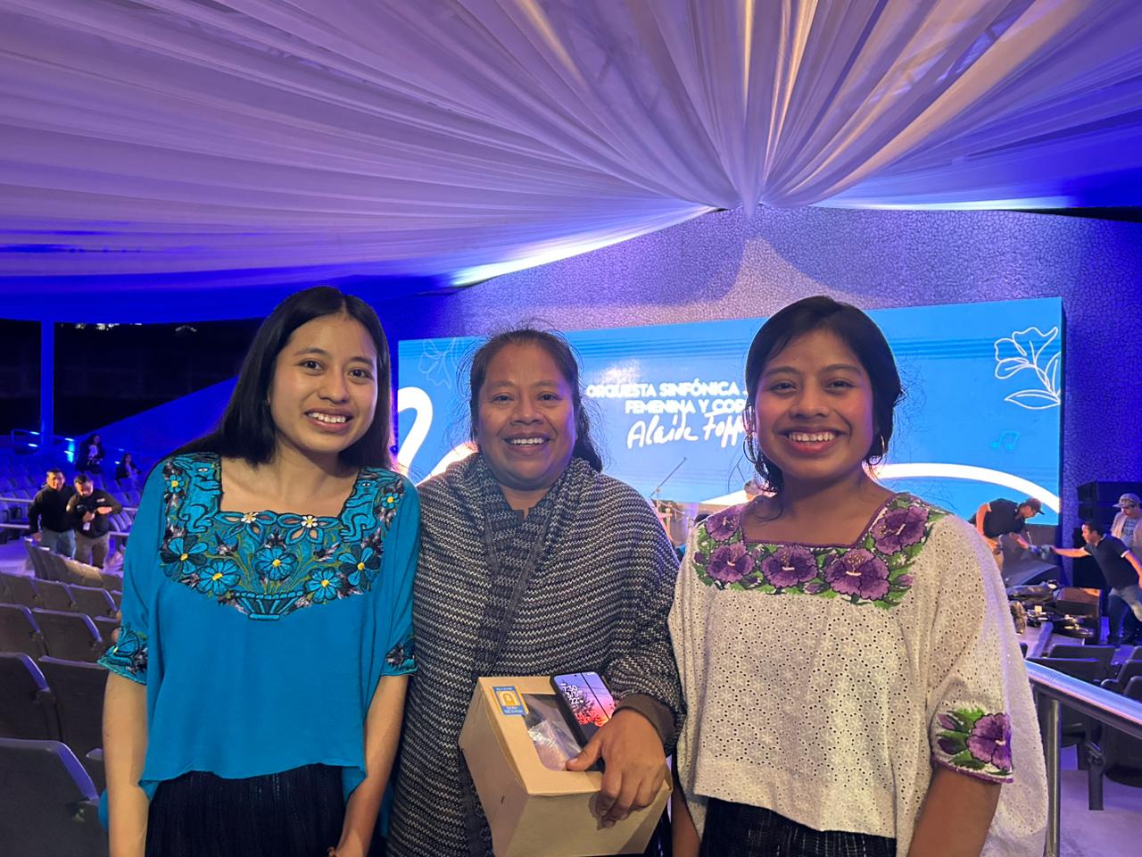 La señora Marta Lidia Max, junto a sus hijas Raquel y Débora, quienes ya están instritas en la Orquesta Sinfónica Juvenil Femenina y Coro, Alaíde Foppa, en Cobán, Alta Verapaz.