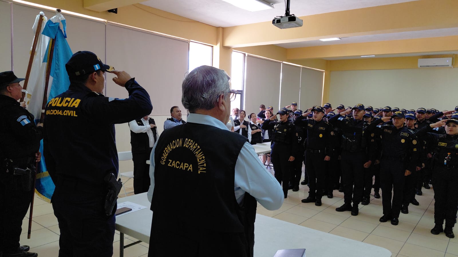 En un acto protocolario realizado el Edificio de Gobierno, el gobernador departamental de Zacapa, Arturo Echeverría Jordán, recibió a los nuevos agentes, de los cuales 12 son mujeres, que se suman a los agentes ya asignados a la Comisaría 24 que tienen a su cargo reforzar la seguridad de los once municipios de departamento de Zacapa.