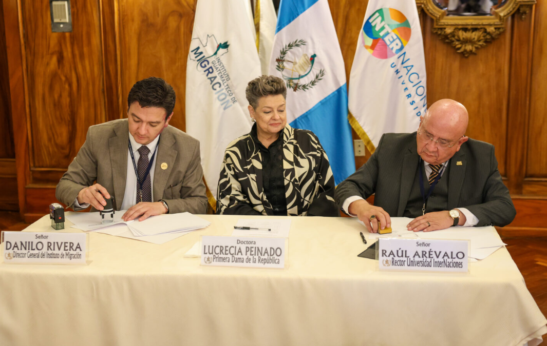 Ciudad de Guatemala, 13 nov (AGN).- El Instituto Guatemalteco de Migración (IGM) y la Universidad InterNaciones firmaron un convenio de cooperación que fortalecerá las acciones a favor de las personas guatemaltecas migrantes retornadas, en el marco del Plan Retorno al Hogar impulsado por el Gobierno de Guatemala.
