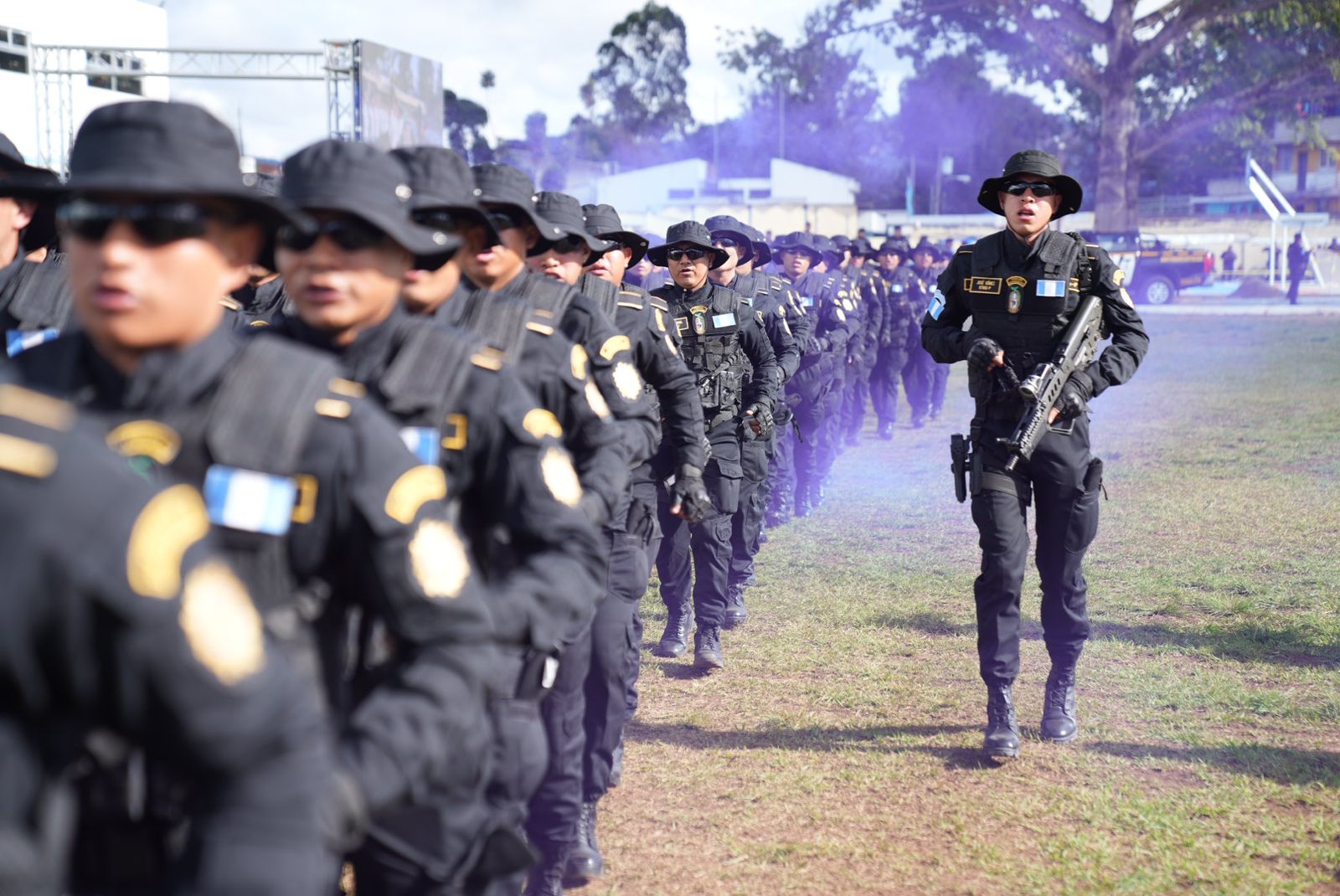 Ciudad de Guatemala, 23 dic (AGN).– El campo de maniobras de la Escuela de Formación de Oficiales de Policía fue escenario, esta mañana, de un acto cargado de simbolismo y compromiso institucional: la clausura del vigesimoprimer curso de capacitación para el ascenso a oficial segundo y unidades especialistas de la Policía Nacional Civil (PNC). En total, 432 integrantes de las fuerzas policiales culminaron su proceso de especialización, mientras que 82 oficiales terceros ascendieron al grado de oficiales segundos, fortaleciendo la estructura jerárquica de la institución.