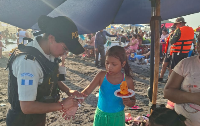 Como parte de las estrategias de prevención, en la playa de Ocós, en San Marcos, agentes policiales colocaron aproximadamente 100 brazaletes a niños y niñas que visitan el lugar junto a sus familias.