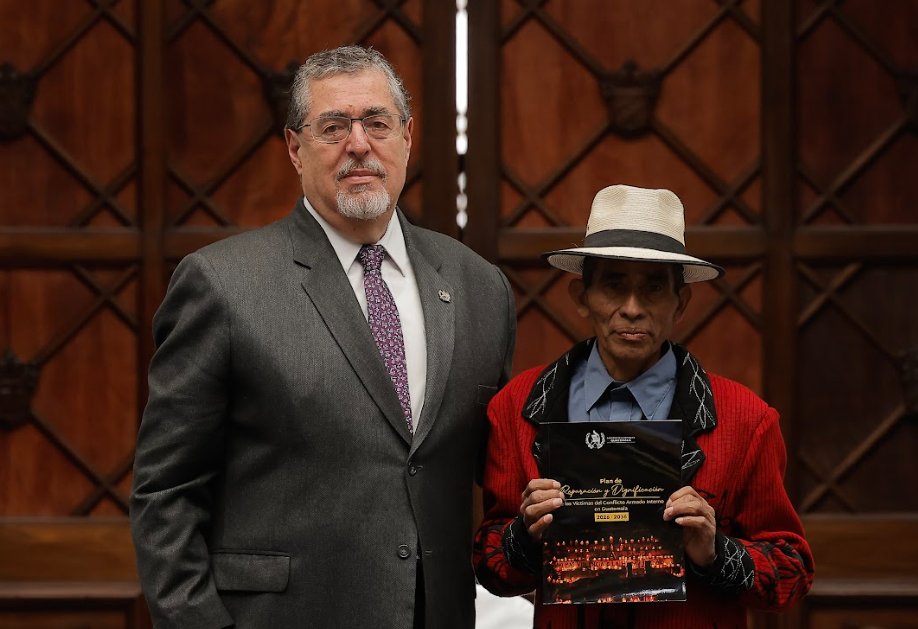 Ciudad de Guatemala, 25 feb. (AGN).- Con motivo de la comemoración del Día Nacional de la Dignidad de las Víctimas del Conflicto Armado Interno (CAI), el presidente Bernardo Arévalo junto a la Comisión Presidencial por la Paz y los Derechos Humanos (Copadeh), hizo entrega del Plan de Reparación y Dignificación de las Víctimas del Conflicto Armado Interno 2026-2036.