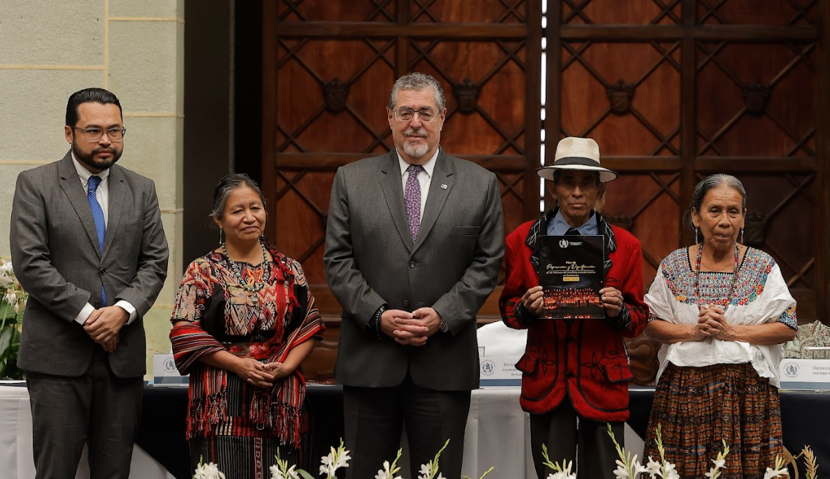 En su discurso, el presidente Arévalo resaltó que este plan se construyó de manera conjunta entre la Copadeh y la Plataforma Nacional de Organizaciones de Victimas del CAI, durante un trabajo conjunto de dos años: