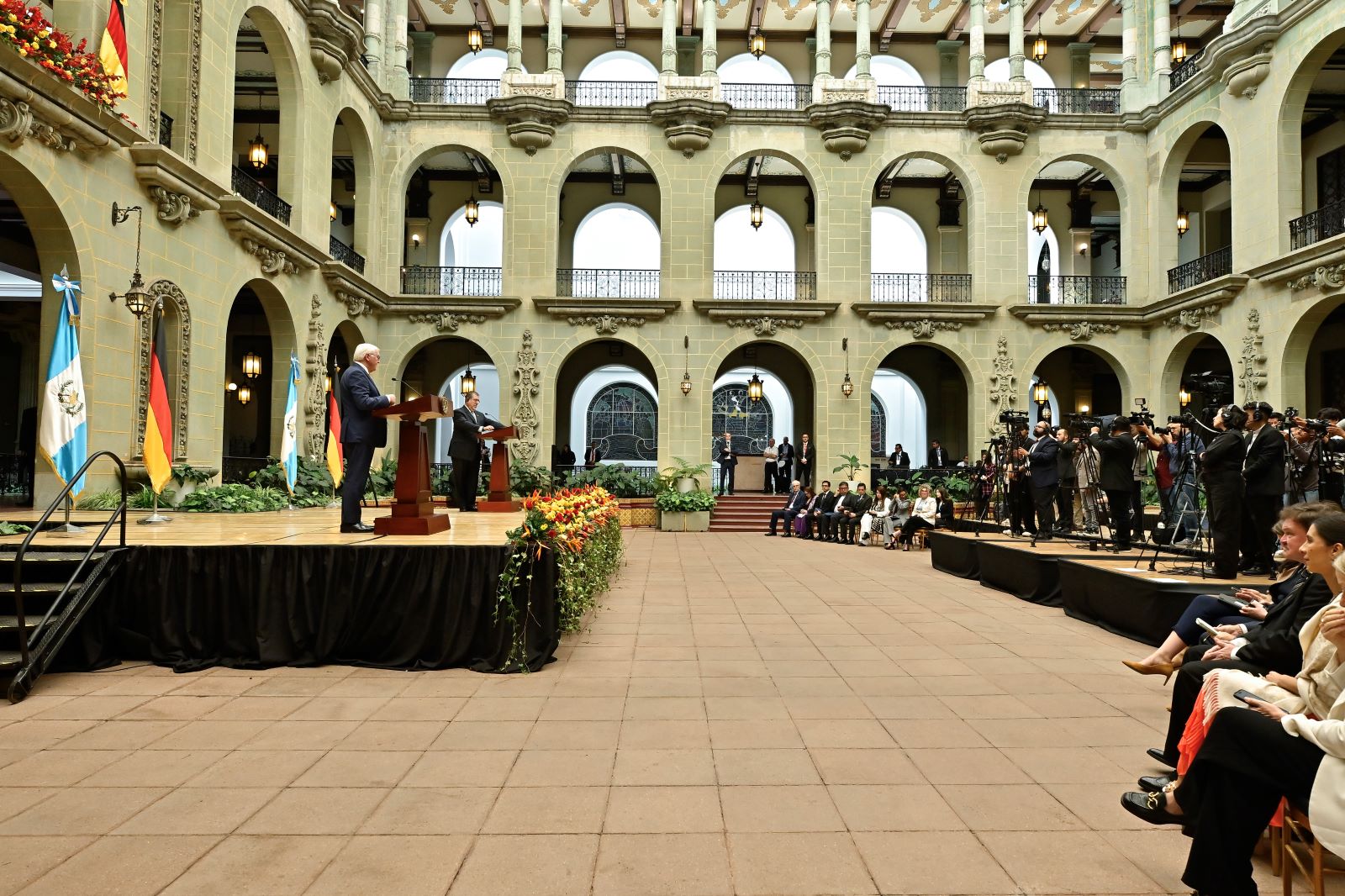 En rueda de prensa, luego de una ronda de conversaciones en el Palacio Nacional de la Cultura de Guatemala, resaltó el valor histórico de la visita del presidente Steinmeier, que simboliza la amistad entre las dos naciones.