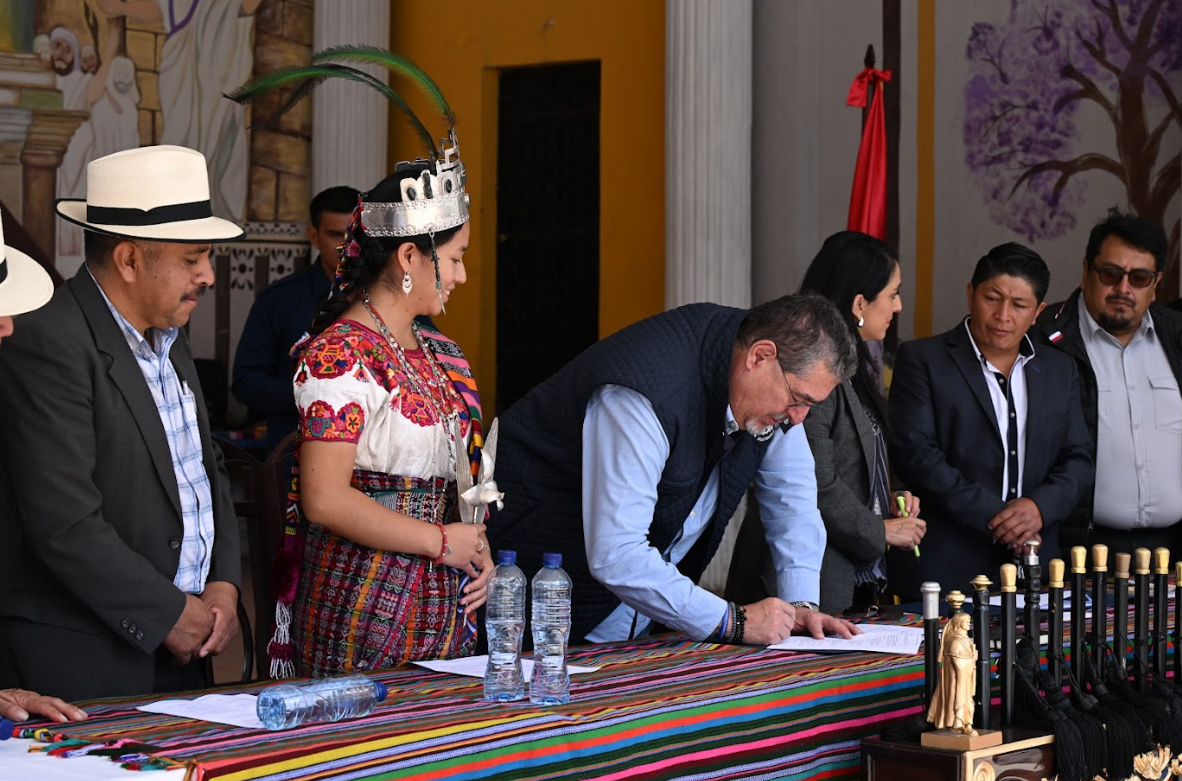 Ciudad de Guatemala, 24 oct (AGN).– La junta directiva y Consejo Consultivo de las 14 Comunidades y Consejo Departamental de Desarrollo Urbano y Rural (Codede) de San Cristóbal, Totonicapán, firmaron este día la agenda de trabajo para el desarrollo de ese municipio junto al presidente Bernardo Arévalo y otras autoridades del Gobierno de Guatemala.