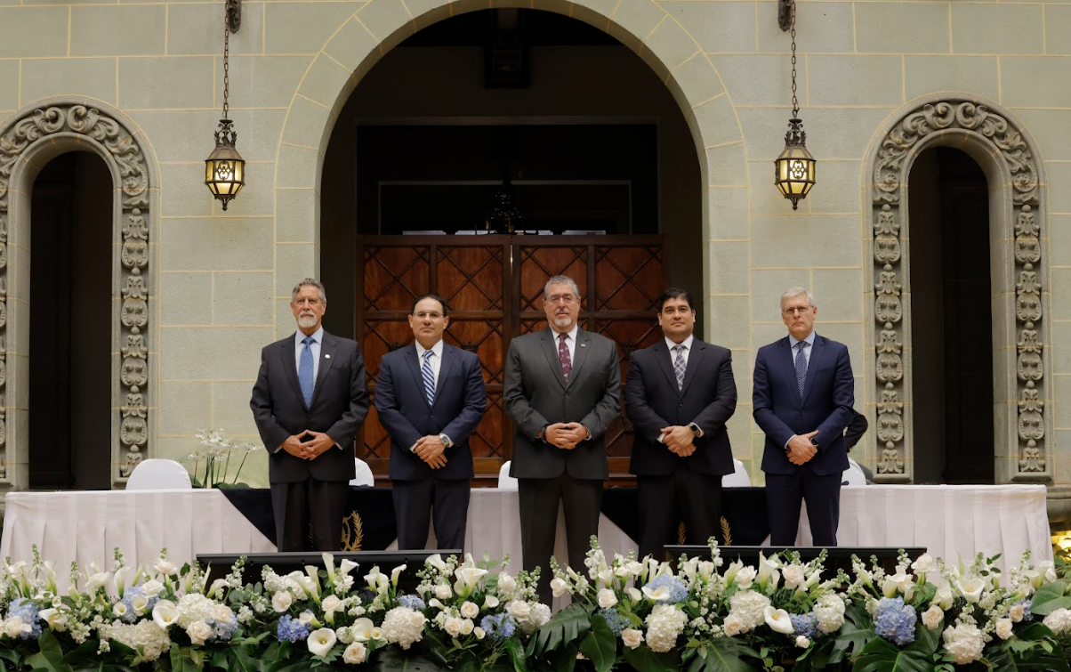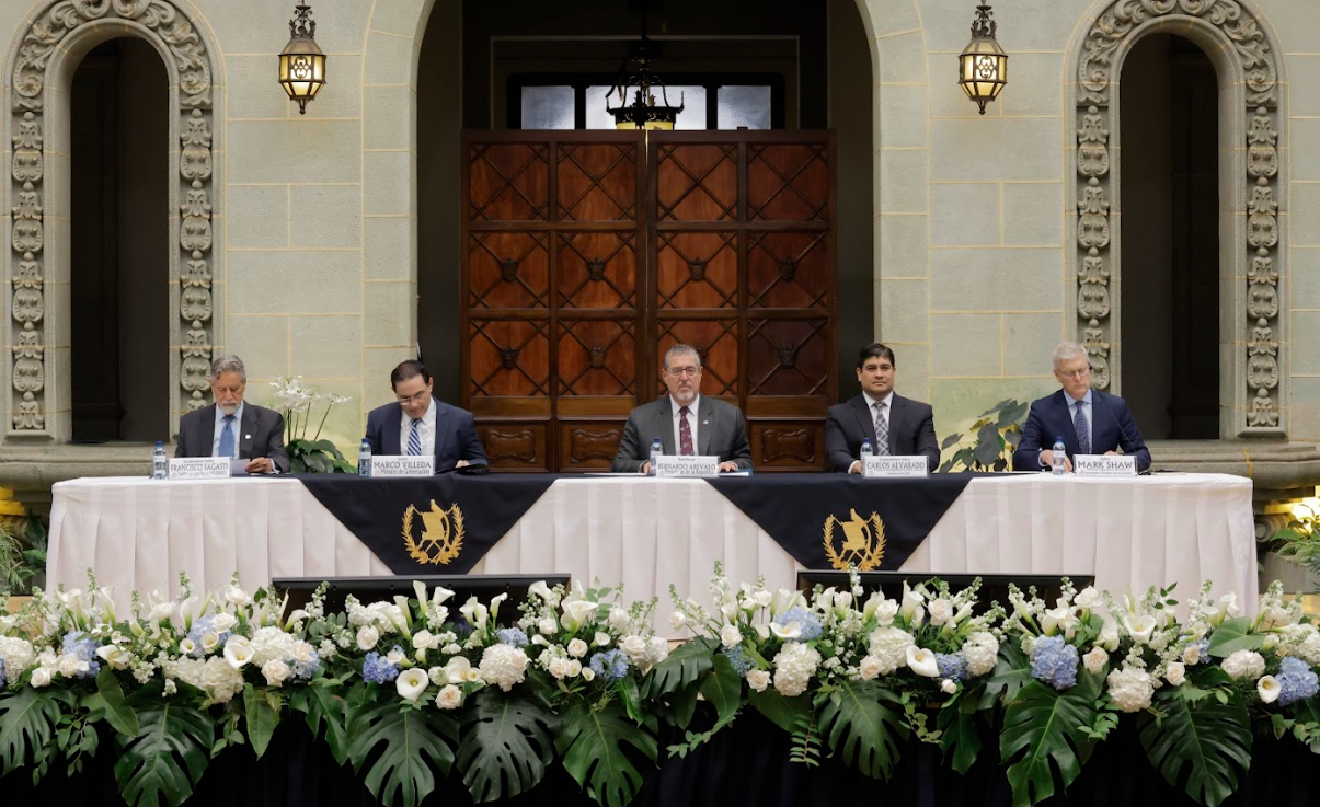 Encabeza el presidente @BArevalodeLeon; el ministro de Gobernación Marco Antonio Villeda; el expresidente de Costa Rica y presidente de Glased, Carlos Alvarado; el director ejecutivo de GI-TOC y secretario técnico de GLASED, Mark Shaw y el expresidente de Perú, Francisco Sagasti. pic.twitter.com/qcoiZtHF7N