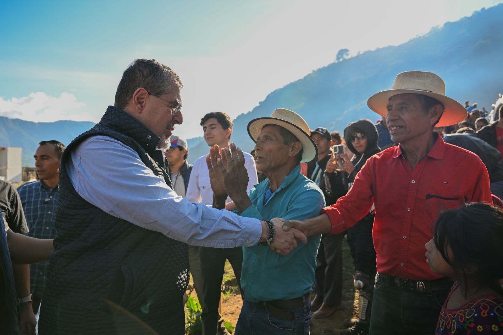El presidente Bernardo Arévalo saluda a pobladores de la aldea Ilom, Chajul, declarado séptimo municipio libre de pisos de tierra. /Foto: Byron de la Cruz