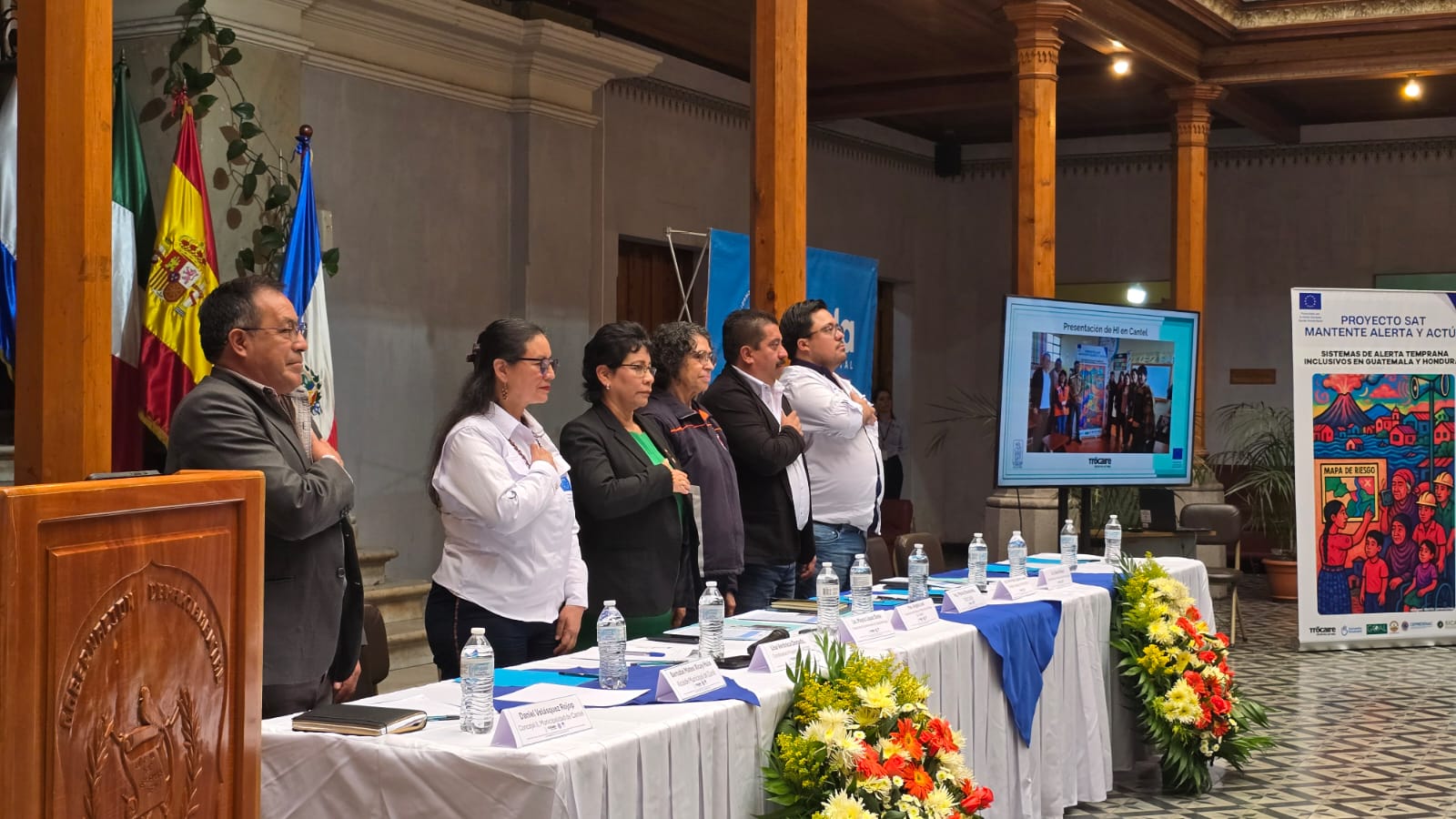 Quetzaltenango, 06 nov (AGN). – Con el firme compromiso de fortalecer las capacidades locales para la prevención y atención de emergencias, en el Salón Gobernadores de la Gobernación Departamental de Quetzaltenango se llevó a cabo el lanzamiento oficial del proyecto SAT – Mantente Alerta y Actúa, una iniciativa que impulsa Sistemas de Alerta Temprana Inclusivos (SAT) en comunidades de Guatemala y Honduras.