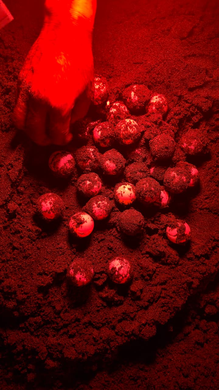 Tanto el sacar los huevos como fotografiar deberá hacerse con precaución y sin colocar luz directa a la tortuga, ya que puede llegar a estresarse.