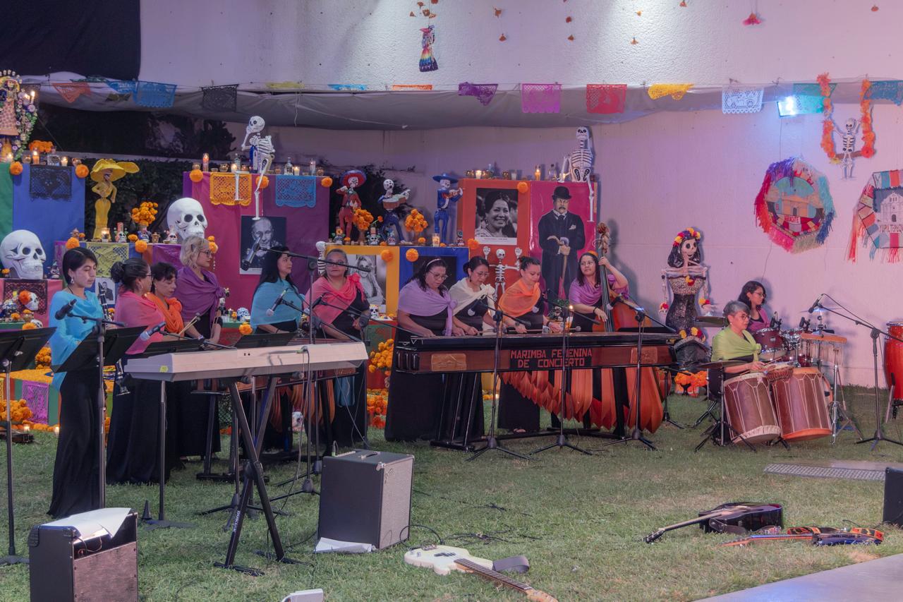 Asimismo, los asistentes pudieron tomarse fotos con las participantes del concurso de catrinas y disfrutar de la ofrenda musical.