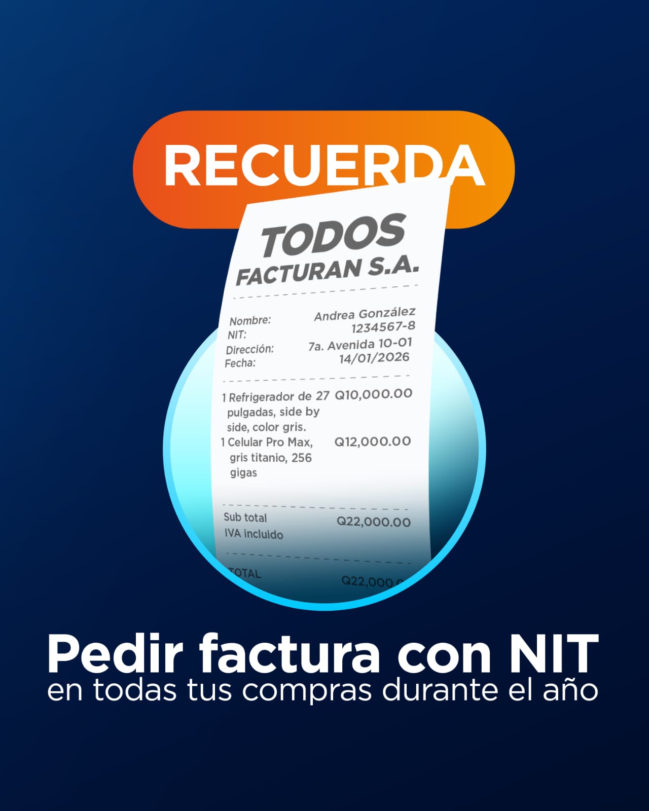 La SAT recordó a los trabajadores en relación de dependencia que pidan sus facturas con su número de identificación tributaria (NIT) en todas las compras del año para que puedan utilizarlas en su planilla IVA-FEL.