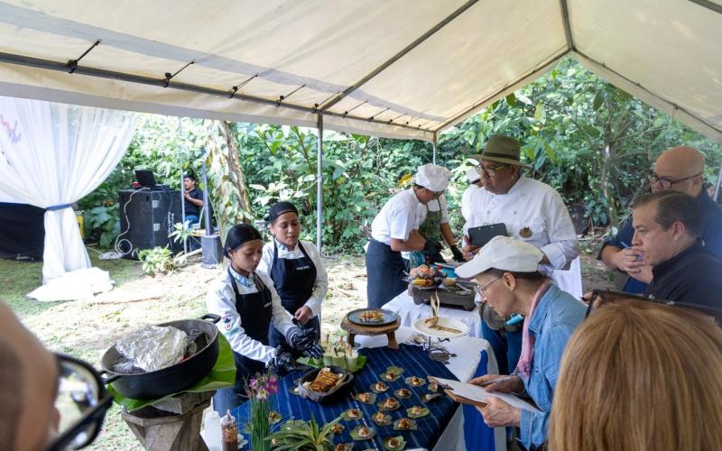 El evento Rescatando tradiciones ancestrales y acompañando su resiliente transformación se llevó a cabo el 18 noviembre 2025 y tuvo como plato fuerte las creaciones culinarias que presentaron cuatro chefs con sus respectivos asistentes.