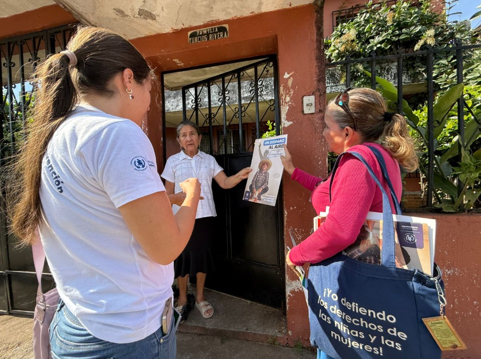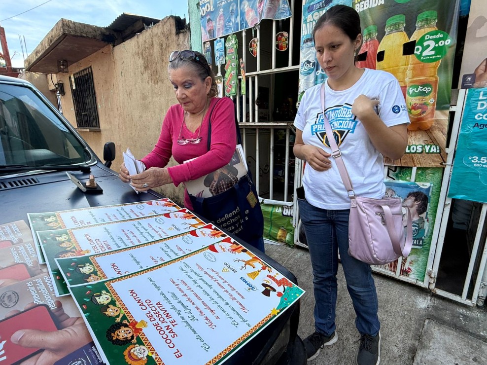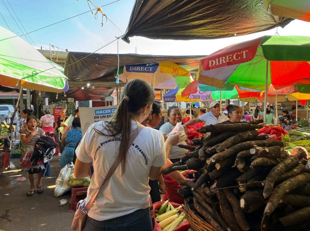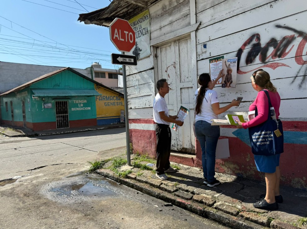 Asimismo, la campaña fue socializada mediante la distribución de afiches en el Parque Central de Retalhuleu y el mercado municipal, ampliando el alcance del mensaje preventivo a comerciantes, familias y transeúntes.