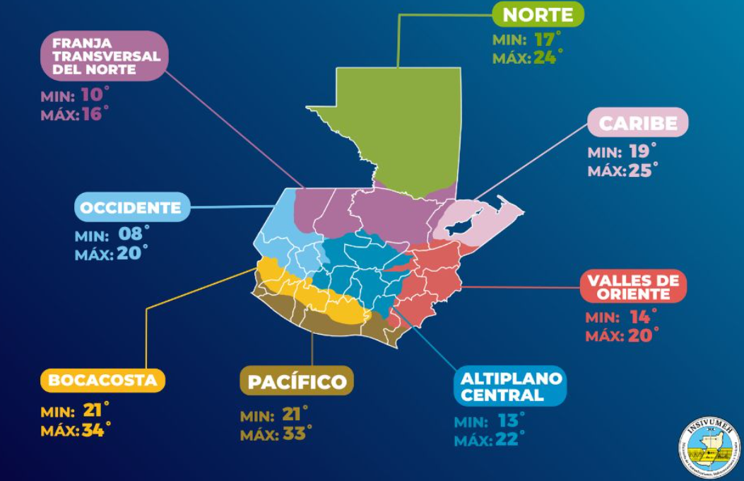 El meteorólogo José María Rodríguez destacó que las temperaturas mínimas más bajas registradas fueron 11 grados centígrados en Quetzaltenango, 10 grados en Huehuetenango y 13 en la Ciudad de Guatemala, valores que reflejan el inicio de un periodo típico más frío de la época de transición hacia la temporada seca.